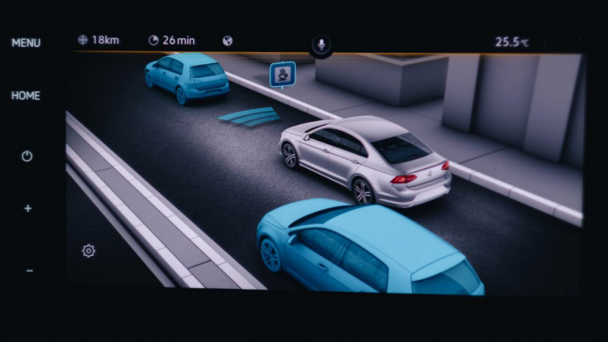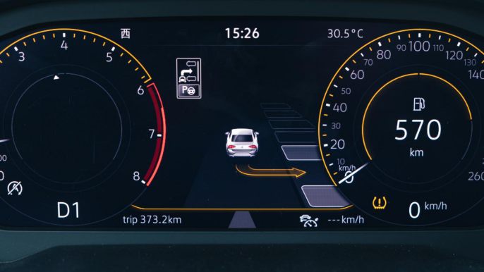 凌渡的辅助驾驶系统中带有前部辅助系统(车前检测监控系统),在自动启停功能开启时,系统将检测前车的动态,假如在红绿灯路口前车已经起步,那么启停功能就让发动机自动介入,而无需再通过踩油门去唤醒。