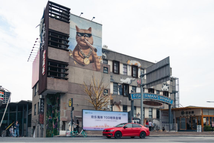 于是趁着女朋友还在公司打理事情,而午饭高峰期也还没来临,这片区域就被我承包了!恰好这次开的是上汽大众凌渡,年轻帅酷的设计与涂鸦墙相得益彰,行吧,拍照走起!