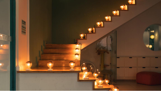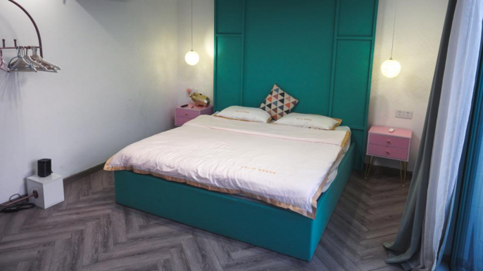 走进屋内,设计则是以温馨浪漫为主,楼梯间、角落各处细节的摆设都颇为精致,这让我瞬间感觉赚翻了,毕竟一晚才300块出头!对比其他民宿,性价比可高了。