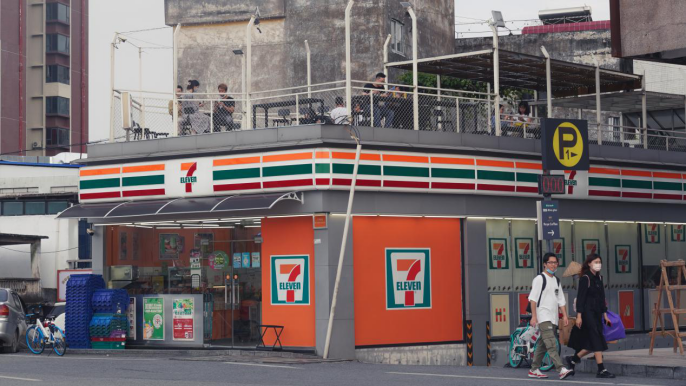 我第一眼就相中了隔壁的“711”便利店,广东人都喊它叫“7仔”,这本是一个普通的连锁便利店,然而开在渔人码头旁边,头顶还设了个休息区,整个氛围别致了不少。