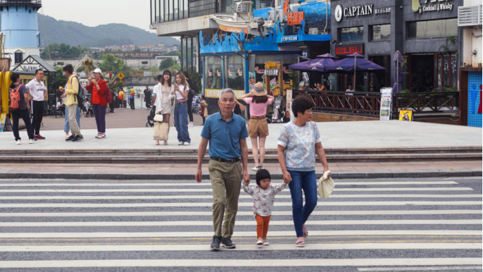 在里面逛了一圈才发现,原来渔人码头的聚集地马路对面,看到不少附近的居民、远来的游客都在这打磨时光。