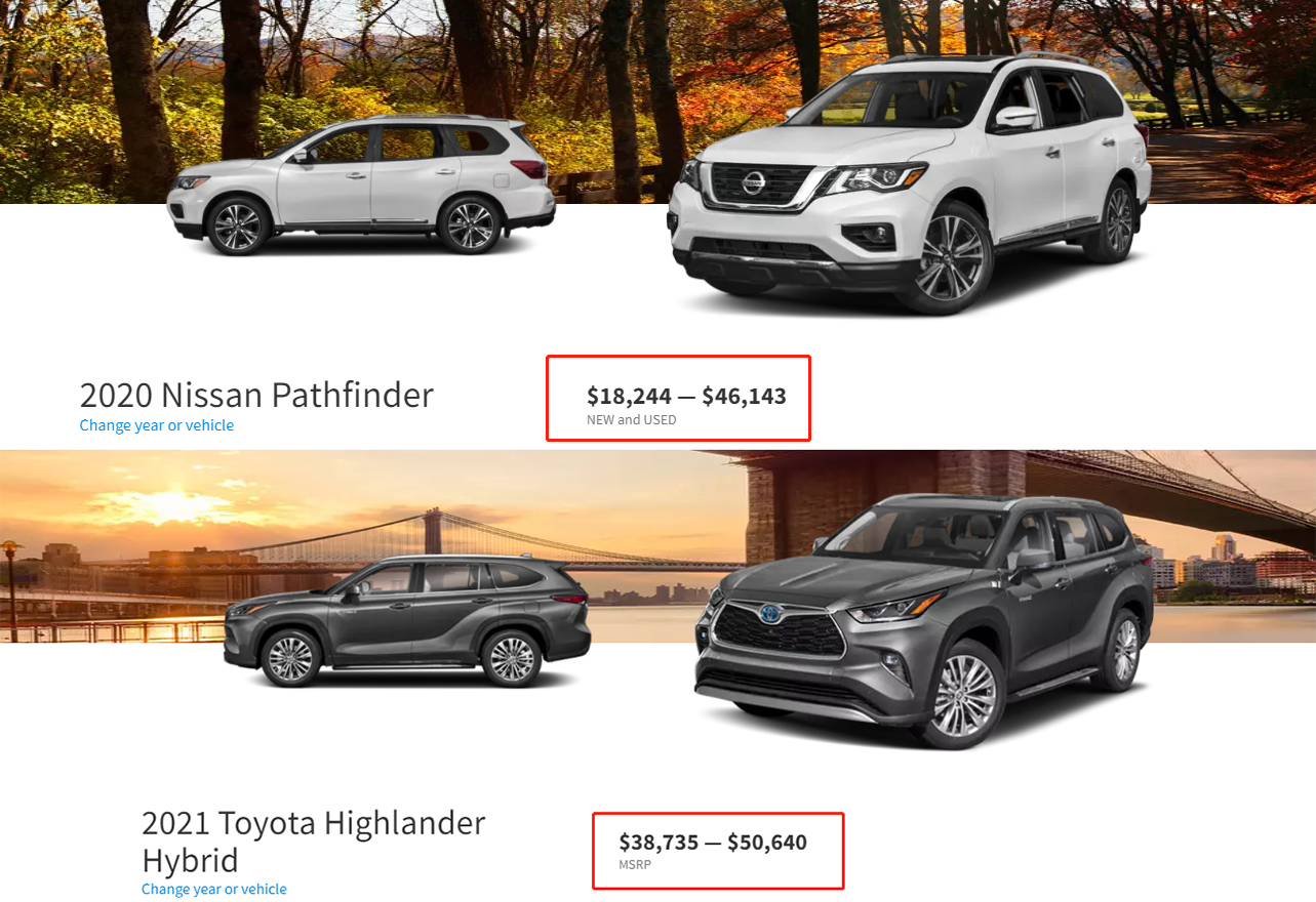 相信对于大多数人来说,除了关心是否国产之外,还比较关心它的售价,现款Pathfinder在美国的售价区间为$18,244 — $46,143(约合人民币11.7-29.7万元),定价比汉兰达($38,735 — $50,640,约合人民币24.9-32.5万元)略低一些。