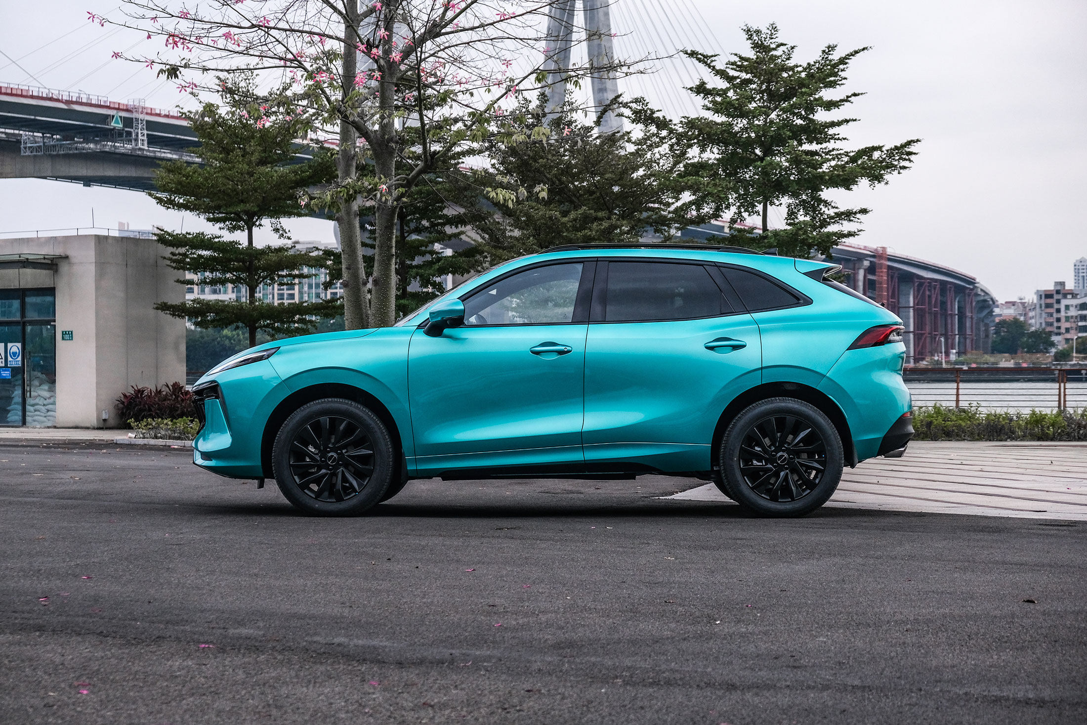 在车身侧面,可以看到两台车对于年轻运动的不同理解。领克05用上了消费者喜闻乐见的溜背设计,还在线条下溜的位置设置了官方称之为“极光之翼”的装饰板,运动感是有的,辨识度也很高。只不过这种设计手法已经司空见惯了,并没有多大的新鲜感。