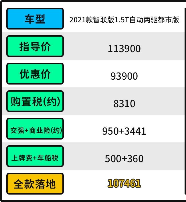 现阶段来看哈弗H6 coupe在现金优惠方面有着不错的终端优惠,无论消费者选择哪款车型配置,全系车型现金优惠金额较为一致,整体现金优惠高达2.5万元,约等于整车售价7.9折,而备受观众者关注的价格方面进行考虑,选择2021款智联版1.5T自动两驱都市型无疑更经济实惠。