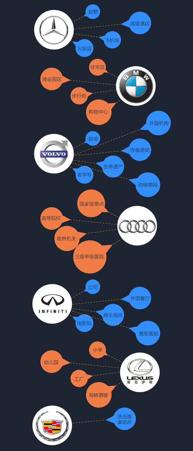 而一份高德大数据对部分高档汽车品牌的出行分析中,沃尔沃车主经常出入剧场、外国机构、老字号、世界遗产等场所,都透露着沃尔沃车主的不简单。