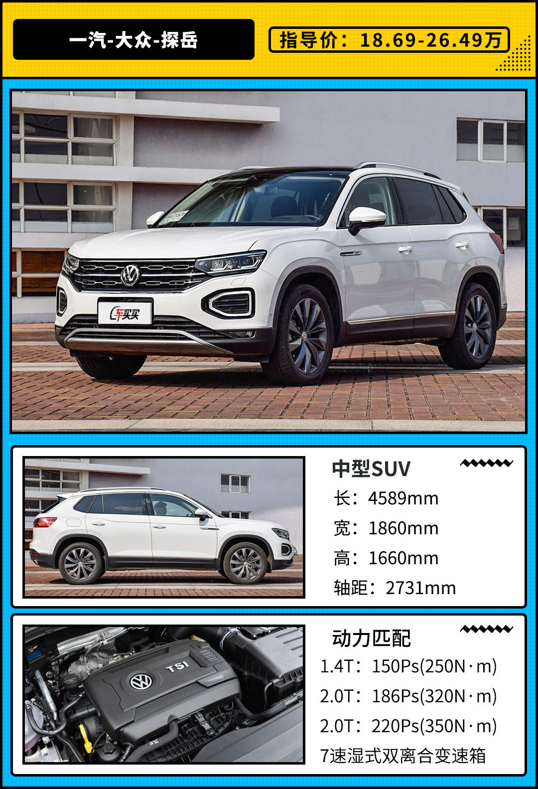 同样作为大众旗下车型,但又互为竞争对手的途岳和探岳,从产品综合实力出发,个人更加推荐探岳,虽然本身有着较高的定价,但从动力和空间两方面而言探岳的表现无疑更加出色,预算允许的条件下确实值得加点钱。而途岳虽说1.4T匹配的干式双离合随之平顺性相对有所欠缺,不过较高的市场保有量还是为其养护带来了不小的便利性。
