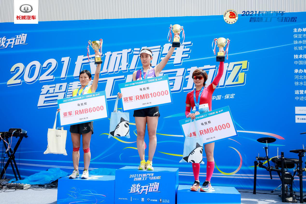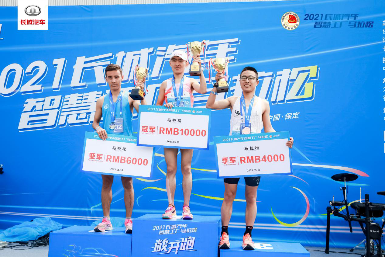大赛共设置全马、半马、健康跑、家庭跑四大组别,赛道穿行长城汽车徐水智慧工厂总装、冲压、焊装三大车间及高环试验场,选手在不停奔跑中尽情领略长城汽车工厂赛道的智慧魅力。上午11时,河北籍选手孙晓阳率先冲破终点线,以2时23分34秒的成绩取得男子马拉松冠军,女子组冠军被江苏籍选手朱晓琳以2小时46分14秒的成绩摘得。半程马拉松男子组、女子组第一则分别由叶尔兰·达吾列提、宋璇获得。
