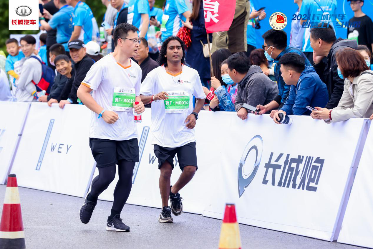 长城汽车董事长魏建军带领100多人高管跑团齐下赛道,并和跑友们频频互动;专业跑团火力全开,人人分秒必争,只为跑出个人最好成绩,赛场上的拼搏身姿也点燃了赛道外的热情,赢得了观众的阵阵欢呼。