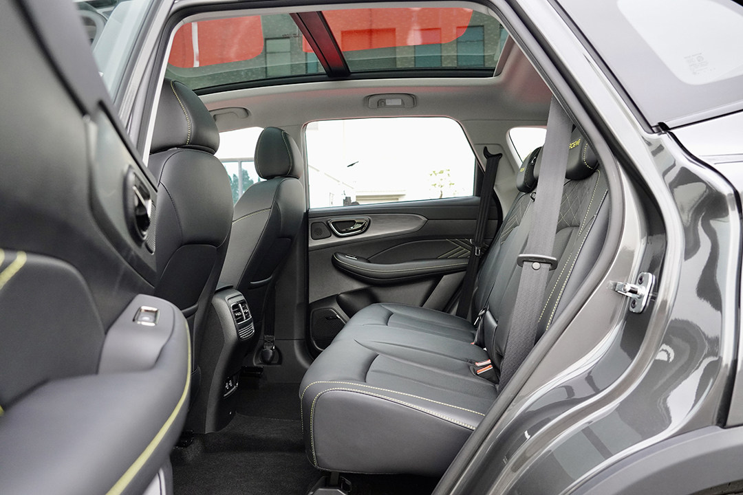 座椅部分也加入荧黄色元素,头枕上还带有荣威英文标识。荣威RX5 PLUS作为一款紧凑型SUV,轴距为2708mm,后排空间表现处于同级偏上水准,后排地台隆起并不高,所以后排乘坐相当舒适,后排坐满三人也不会觉得憋屈。