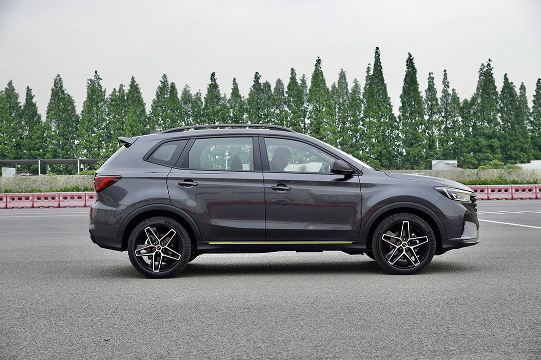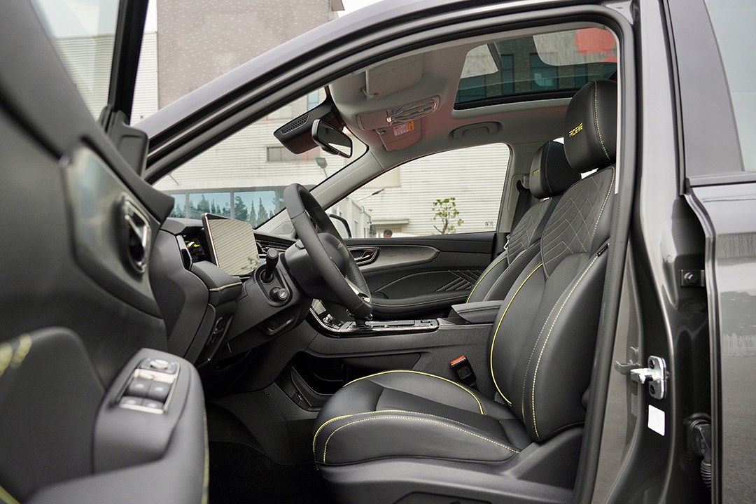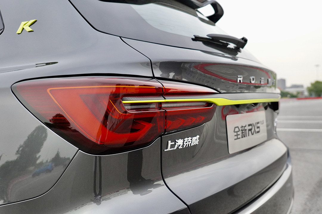侧面来看,实拍车型还带有如今流行的“黑武士”风格元素,后视镜、车窗装饰条以及行李架均为黑色涂装。19英寸的全新样式五辐式轮毂、下部的荧黄色装饰条以及D柱上的荧黄色“R”标,则为它增添了几分亮色。