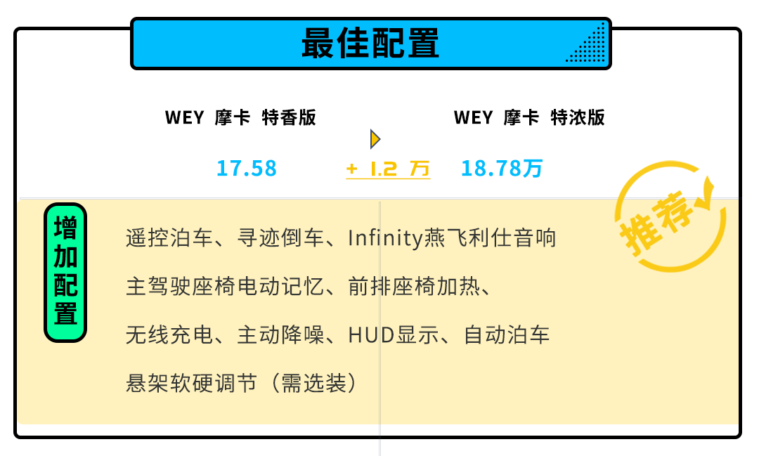 因此,在买买君看来即便是特浓版在指导定价上比特香版贵上1.2万,考虑到配置所体现的智能化驾控和舒适性的提升,这多出来的1.2万绝对能够值回票价!