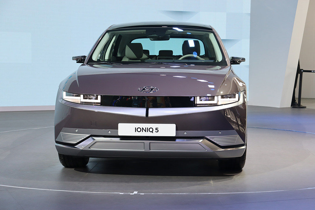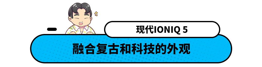 我们来回顾一下外观,IONIQ 5的设计延续了45概念车的理念,线条干净利落,加上蚌式前机舱盖和像素阵列式大灯,都给人一种赛博朋克的感觉,一面复古,一面科技。