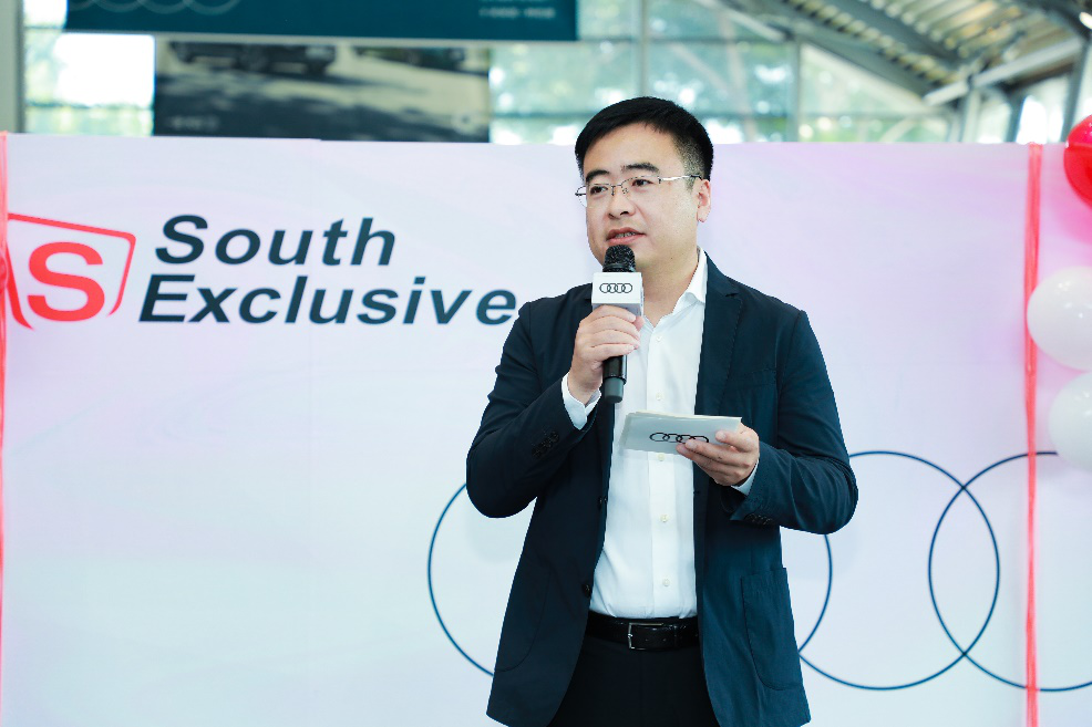在欢迎音乐的陪同下,奥迪A6L南方车型001号车主由奥迪小熊一路指引来到交车区就坐。一汽-大众奥迪南部区区域总经理胡海峰先生作活动致辞,并表示2021年一汽-大众奥迪南部区针对广东用户个性化的产品需求,经过多轮次的客户调研和经销商访谈,充分汲取用户心声,并在一汽-大众产品管理部的鼎力支持下,打造了专属的奥迪南方车型。与时代共振,因需求创变。