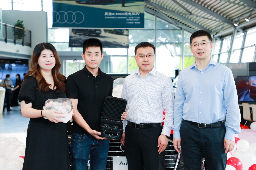一汽-大众产品管理部奥迪中大型车平台部长郭院波先生、一汽-大众产品管理部奥迪紧凑型车平台部长刘宏光先生共同把钥匙礼盒交付给到两位车主,为两位车主送上诚挚的祝贺,并对两位车主的支持和信任表示感谢。愿奥迪与您一路相伴,共同驰骋无垠征程!媒体朋友和嘉宾朋友见证这重要时刻。