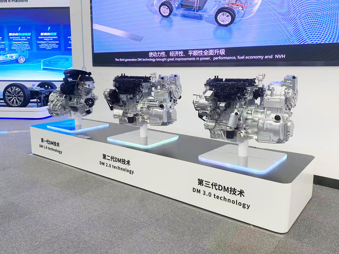 在这里我们可以追溯不同的时间节点比亚迪所“创造”的点点滴滴,各种工种的比亚迪工程师、特意挑选并挂满一整面墙的专利墙、三代DM技术的展示、全新骁云-插混专用1.5L高效发动机的吸引眼球、还有DiLink智能化的运用、乃至全新的刀片电池、比亚迪汉EV等,这些都是比亚迪从2003年走过来的足迹。