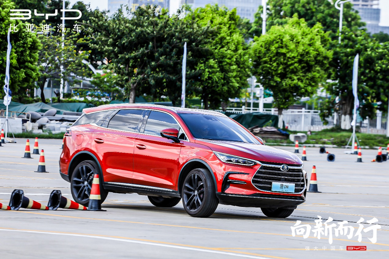 在8字绕桩、蛇形绕桩项目上,汉、唐的表现依旧不俗。汉EV的弹簧、减振器和整个底盘,都是重新设计并且调校的。从而让汉EV有了很强的可控性和稳定性,从最直观的效果来看,汉EV的麋鹿测试成绩达到了80km/h以上。2021款唐DM驾驶起来有德系豪华车型的味道,这里就要重点提一下FSD可变阻尼悬架系统,有韧劲的同时,还能有效过滤颠簸感。整车稳重又不臃肿,即便是车身长度接近4米9的中大型SUV,操控起来得心应手,可谓操控、舒适一举兼得。