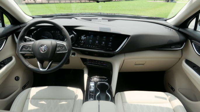 昂科威PLUS的内饰与昂科威S、昂科旗高度相似,均为家族最新设计语言,中控台大角度偏向驾驶员一侧。