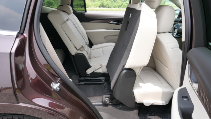 昂科威PLUS采用的是2+3+2座椅布局,而为了方便第三排乘客进出,二排座椅两侧均配备了Easy Entry方便进出功能,只需扳动一下开关就能轻易的进入第三排。