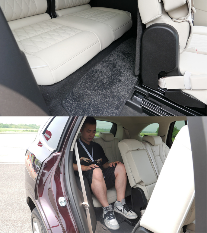 不过到了第三排就需要指出一下,由于三排地台有些过高,因此第三排座椅对于大腿的支撑稍微欠缺,但好在二排调到我的坐姿位置时,第三排还有腿部空间的余量。而在实际场景中,我更多建议小朋友乘坐或是应急使用。