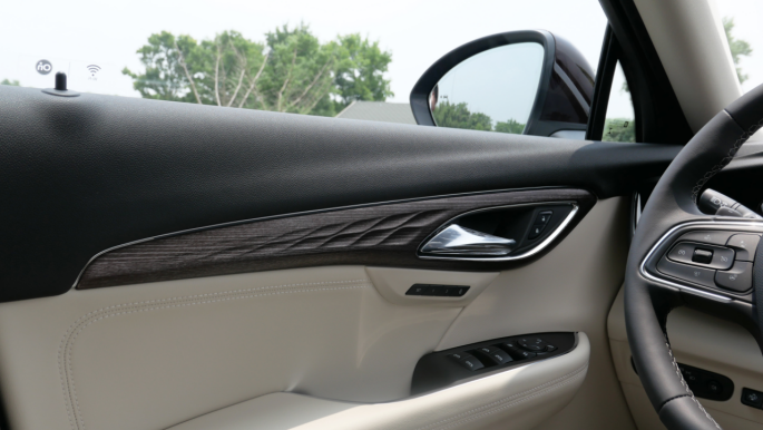 作为艾维亚版本,新车保持了别克高水准的做工和用料,其中控台上方区域均采用了软性材质,其余大部分区域亦有皮质包裹,摸起来的手感不错。