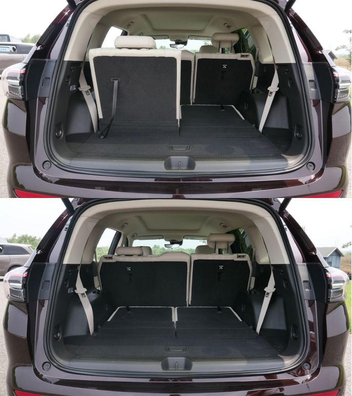 得益于第三排座椅支持比例放倒,昂科威PLUS的后备厢储物便更加灵活,而在第二、第三排座椅全放倒下,其后备厢容积高达1642L。