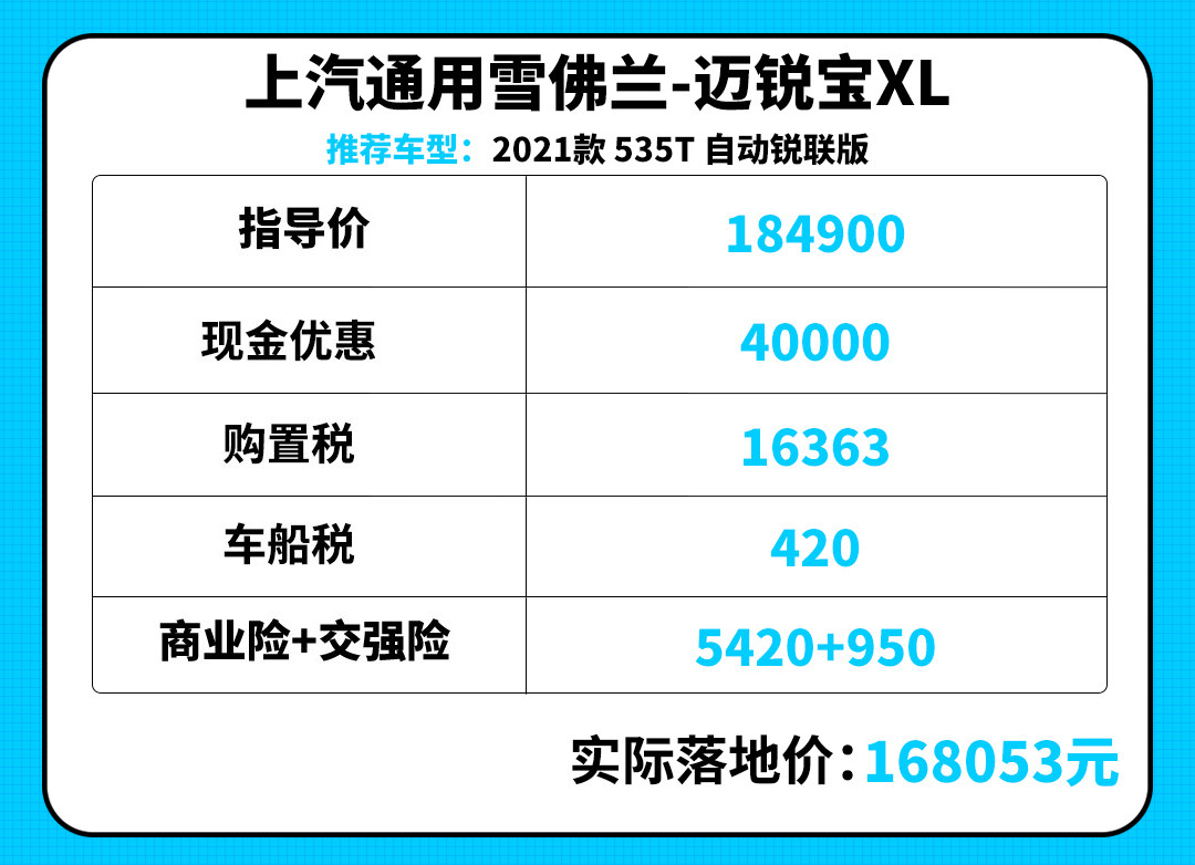 目前迈锐宝XL已有4万元的终端优惠加持,1.5T车型主销的自动锐联版,指导价是18.49万,在4万元的终端优惠加持下裸车价仅14.49万;算上保险、购置税等一系列费用后的实际落地价仅16.81万。其落地价格基本思域的中高配版本持平。
