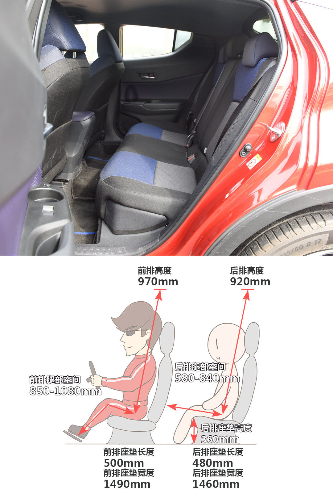 而在空间方面,虽然从车身侧面来看前排已经占据了一大半的车内空间,但实际进入到车内,其空间水准并不会感到拥挤。580~840mm的腿部空间,算是小型SUV的上层水准,实际乘坐起来相较本田缤智或日产逍客也几乎没有差距。