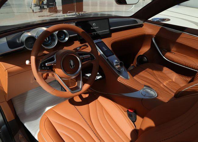 车型尾部分的设计则比较简洁,但尾灯造型同样以圆形的设计与头灯相呼应,另外车顶采用一整块玻璃天幕,这在保时捷911车型上似乎有所见过。据悉,量产后该车还将会配有电动尾翼。