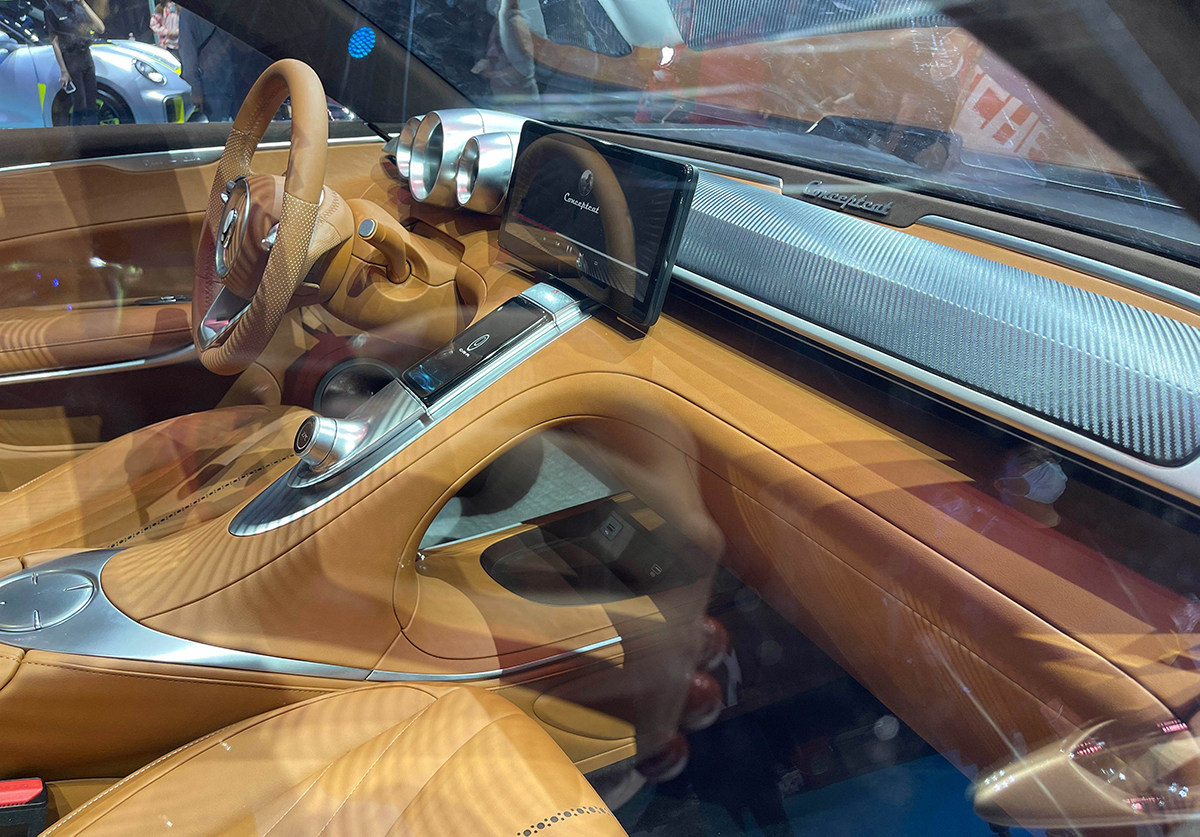 通过玻璃拍摄的的闪电猫内饰,可以看出新车采用非常酷炫的设计,简约当中凸显了一定科技感,并没有采用过多的线条修饰,与其轿跑定位十分符合。