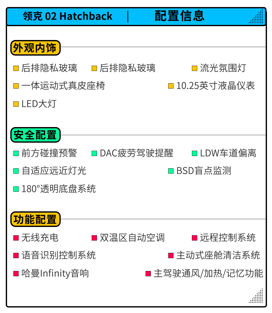 话已至此,那么领克02 Hatchback在买买君看来值不值得入手?依照惯例来看看领克02 Hatchback都有啥配置。