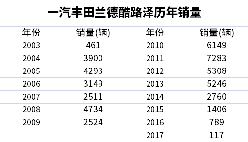 更重要的是,当年兰德酷路泽每年能卖数千辆的成绩,在2011年达到顶峰,年销量7283辆!要知道这可是14年前的一台百万级车型,即便是放到现在,年销量能达到3000辆以上的百万级车型也并不多见。