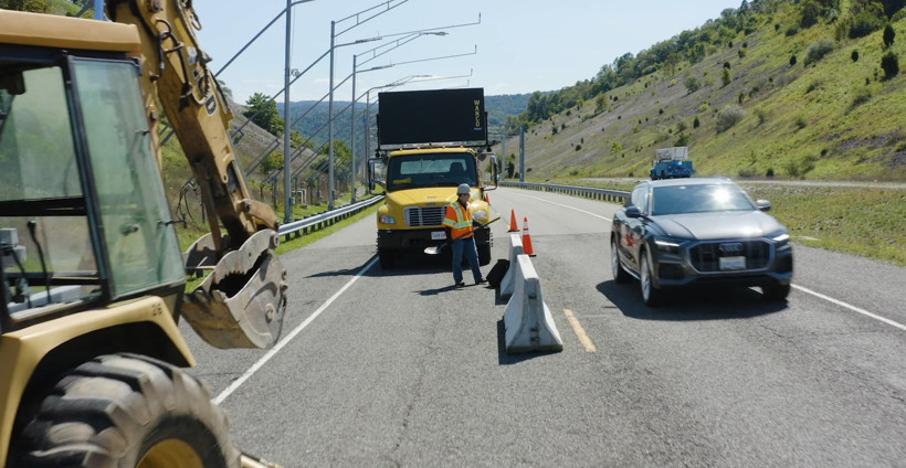 路边工作人员还配备了C-V2X的背心,能与车辆互相传递警告和警报信息,提供了道路施工的效率和安全性。