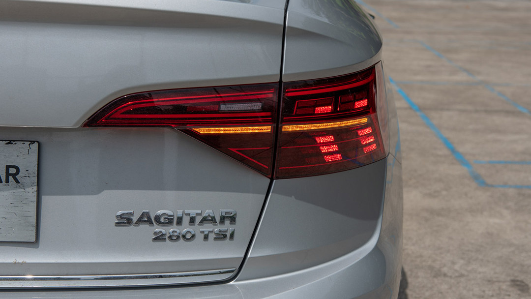 尾部的造型比较扁平,小鸭尾的设计是两点,再加上全系标配LED尾灯组(高配还带有流水转向灯效果)和底部排气装饰,都让整车增加一些高端感。