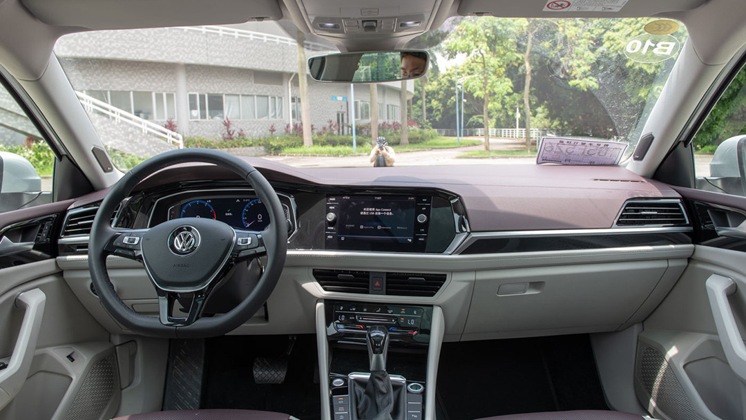 来到速腾的内饰,它的设计风格可以说很熟悉了,此前这一套内饰已经在途锐还有宝来等车型上见过了,不过速腾运用这一套内饰,还是有属于自己的一套。