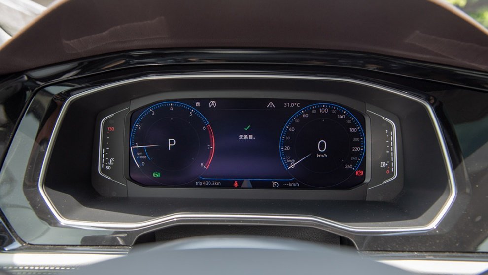 虽说方向盘的风格非常大众,但10.3英寸全液晶仪表盘让速腾脱离了老款大众的“陈年感”,并且还能显示许多非常有用的信息,并且还能自由选择自己所需的信息组合。需注意的是,10.3英寸仪表盘仅有高配车型配备。
