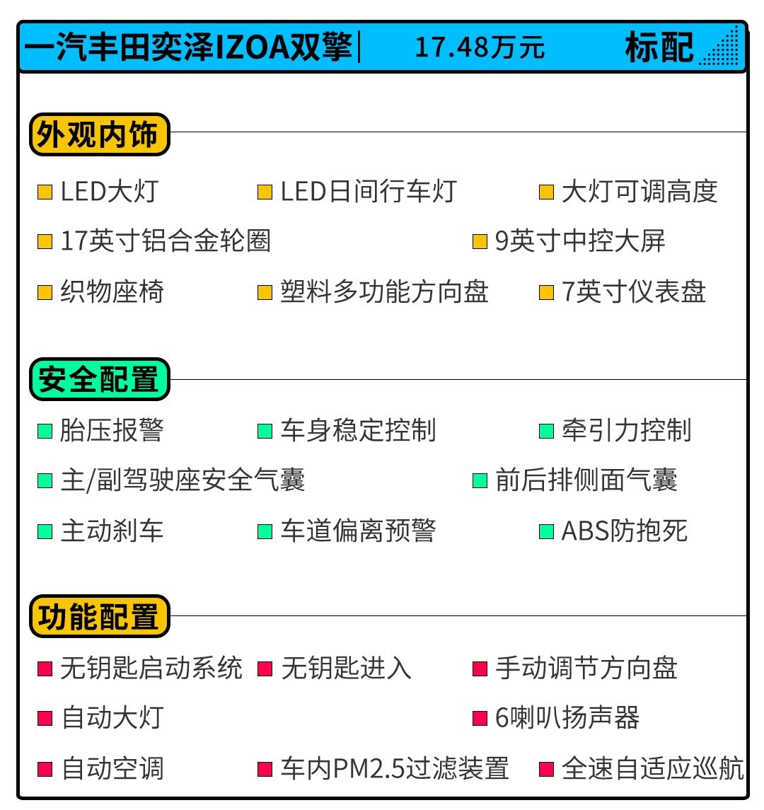 与卡罗拉和亚洲龙等双擎车型不同,一汽丰田此次在版本配置上显得十分克制,只推出了高中低三个版本配置,指导价为17.48-18.98万元,那么问题来了,哪个版本才是最值得购买的呢?