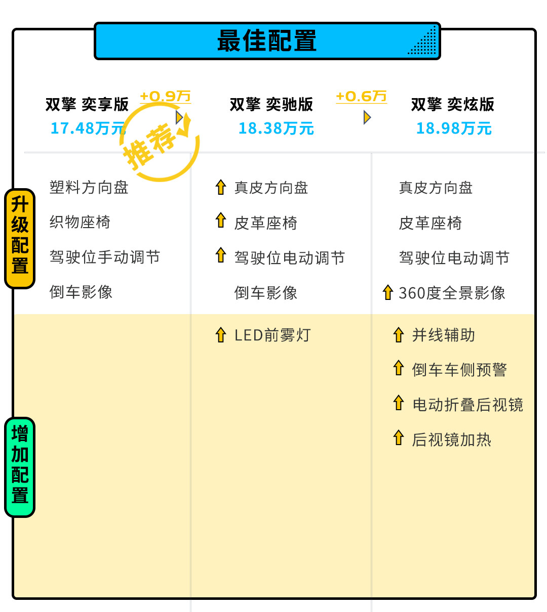 至于更贵的顶配版本,它比另外两个版本多了几项功能辅助,例如360度全景影像、并线辅助、倒车车侧预警、后视镜电动折叠和加热等功能,假如你对安全性比较在乎,那么这个版本也是可以购买的。