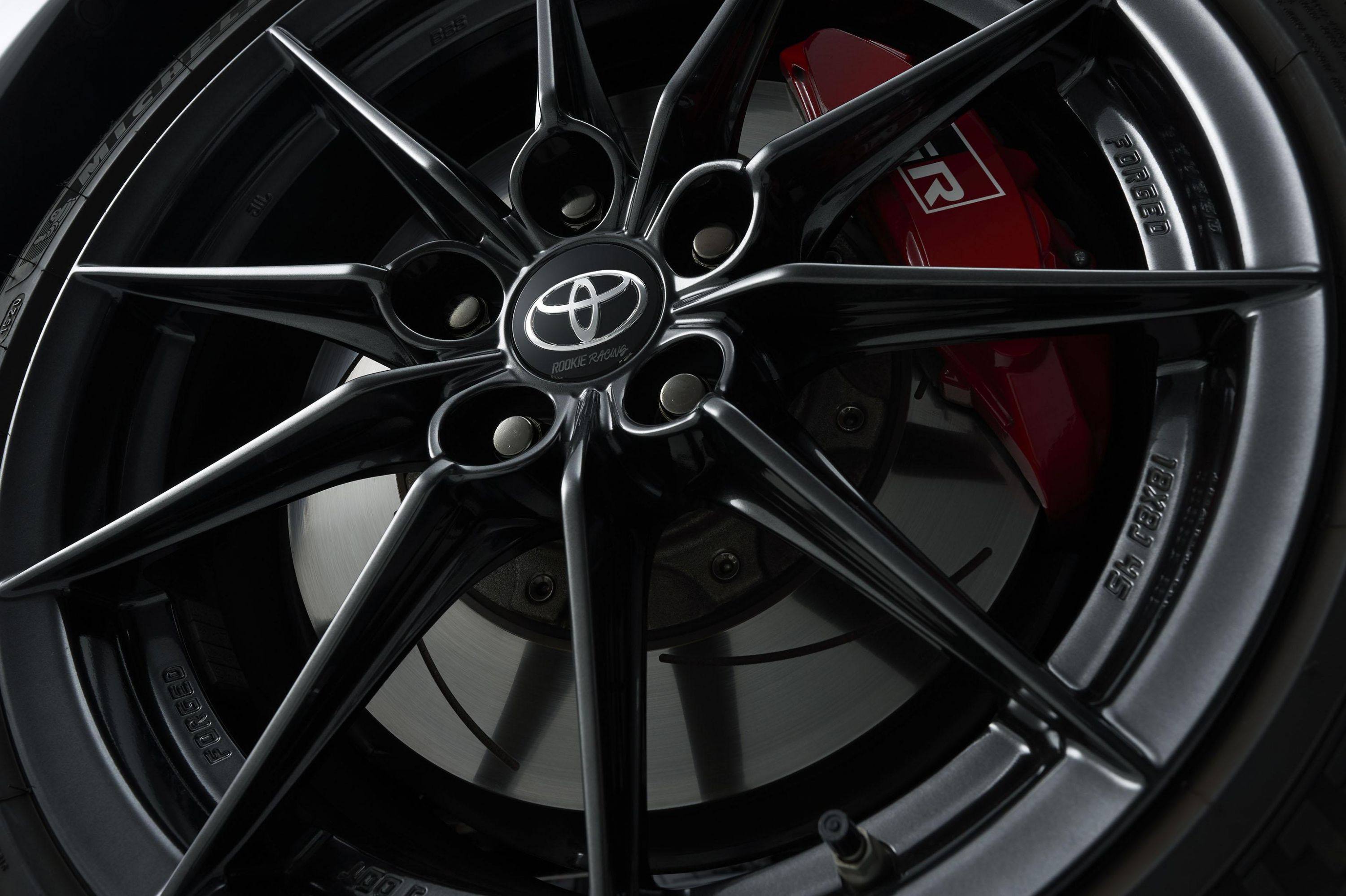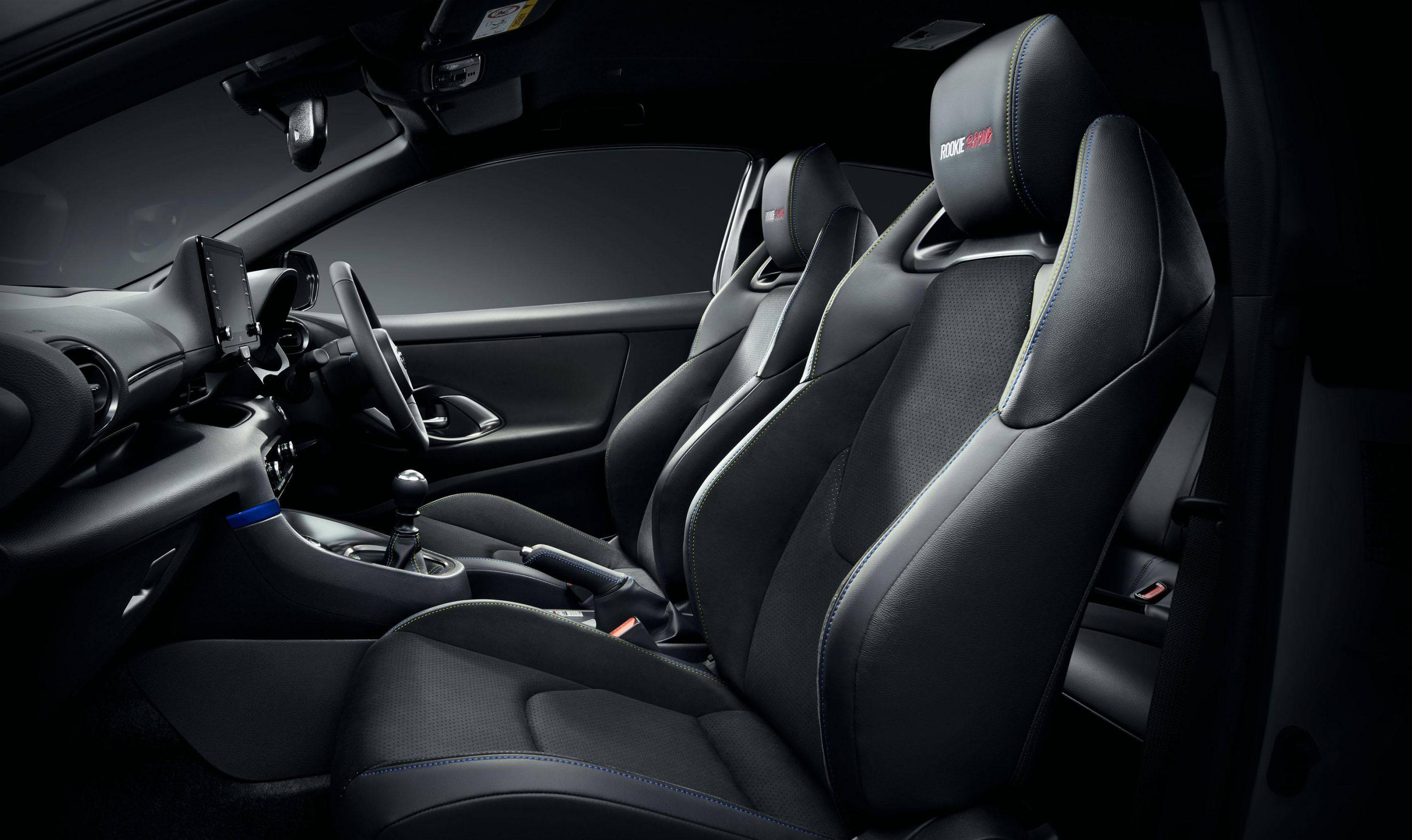 GR YARiS Morizo Selection特别版在前挡风玻璃下方印有Morizo签名,轮毂中心盖也加入了Rookie Racing的标识,进一步展现特别版车型的身份。此外,新车的减震系统也采用了Rookie Racing标志性的蓝黄配色。内饰也将缝线升级为了蓝黄配色,并在前排座椅头枕上刺绣了Rookie Racing的字样。