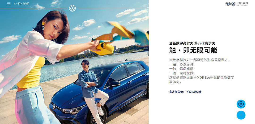 而看到第八代高尔夫的宣传语“触·即无限可能”,便能发现大众希望以高尔夫全新的触控座舱为卖点,吸引喜爱先进科技配置的年轻人。