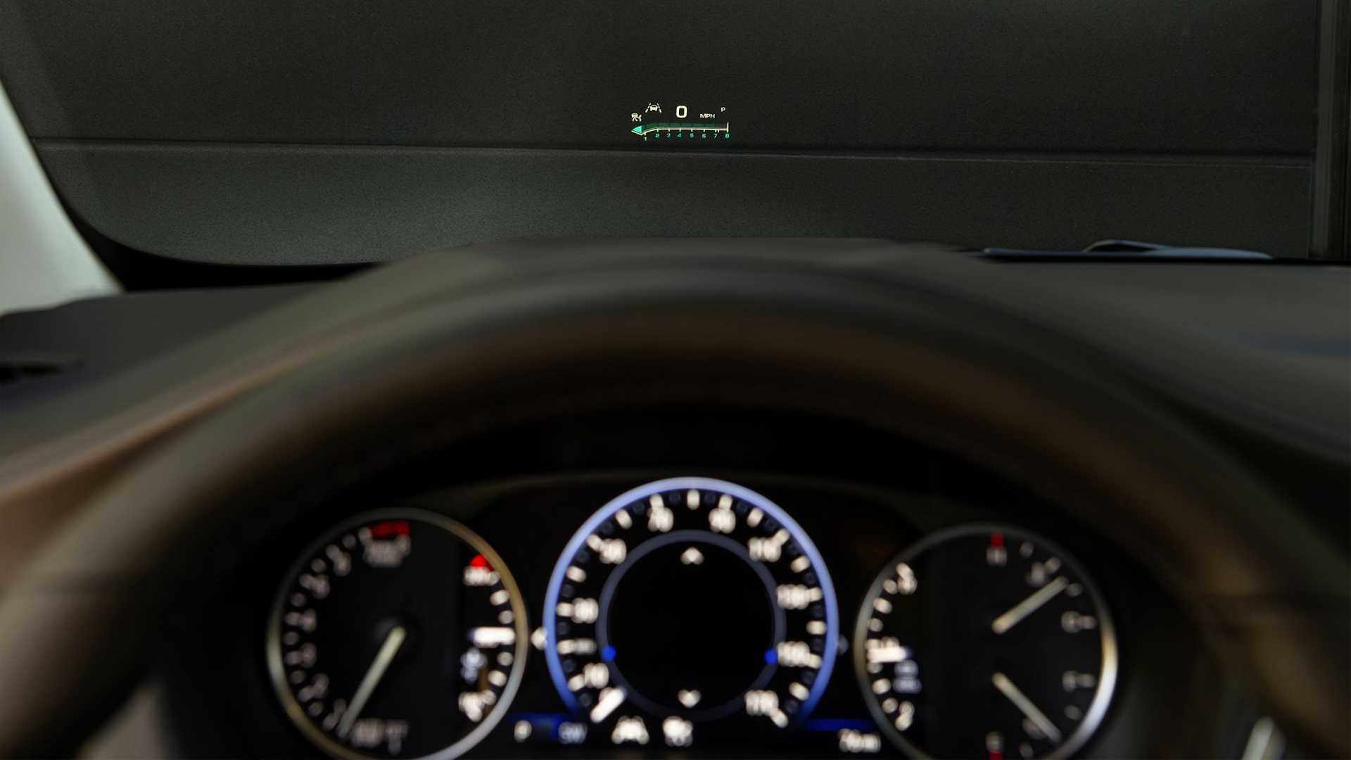 首先我们来看看仪表盘,仪表盘的样式从双炮筒式改为三炮筒仪表盘,中间的时速计为屏幕,整体观感依旧保持了它的豪华感,HUD抬头显示也有更多功能,例如主动安全提示和转速表。