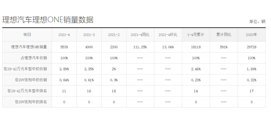 以4月销量为例,理想one的当月销量为5539辆,在高端SUV榜单中基本都能稳定上榜,同属新能源车型的蔚来ES6等车型实力同样不差,为何唯独理想ONE异军突起?