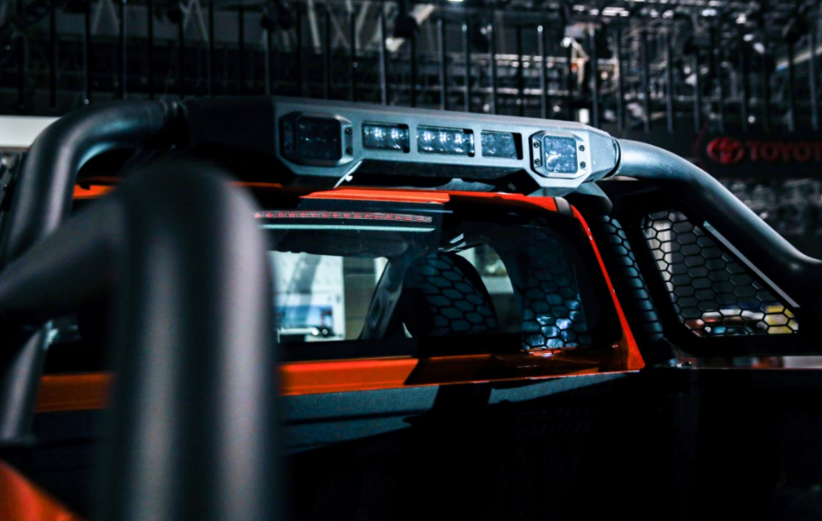 无限拓展。5项改装接口预留,并配备原厂改装电气功能开关,改装更安全、更便捷。同时,标配2.5吨牵引资质,拓展无限可能。此外,原厂将开发专用赛车级车箱防滚架、赛车服精品,让你体验极致驾驶乐趣。