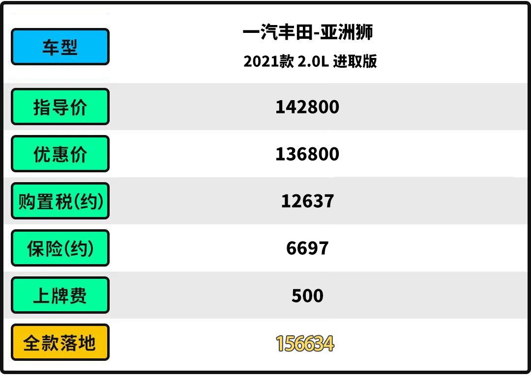 以亚洲狮的入门版车型为例,虽然目前车型已有6000元的终端优惠,但算上购置税等一系列费用后,车辆的实际落地价依旧高达15.66万。对于一款A+级车型,入门版车型就要15.66万的价格着实不便宜。而主销版本的实际落地价格甚至会去到17~18万。