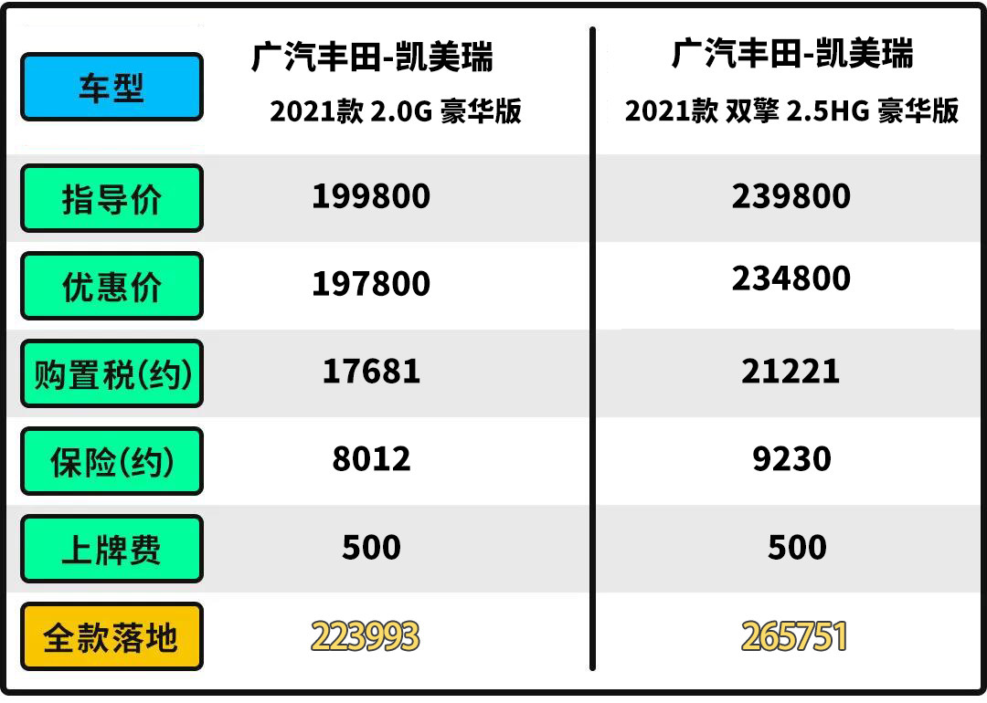 以丰田旗下的凯美瑞为例子,目前凯美瑞主销的车型为2.0G 豪华版,指导价是19.98万,但优惠仅有2000元,即便能再和销售洽谈争取更高的优惠幅度,但相较近20万的车价而言几乎是微不足道。以优惠后的19.78万裸车价计算,加上商业保险、车船税、购置税等一系列费用后,车辆的实际落地价为22.4万。对比直接竞争对手的雅阁,这样的售价雅阁都已经能够买到动力更强的锐·混动车型了。