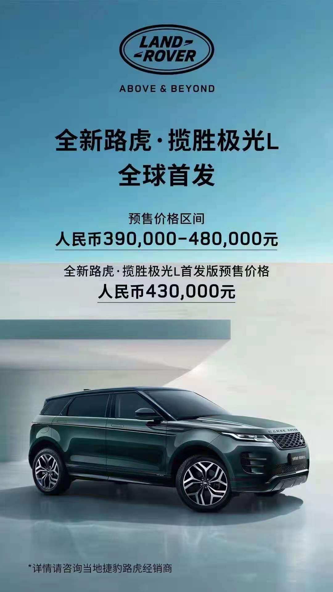 6月15日,捷豹路虎品牌上海发布会,宣布旗下路虎揽胜极光L(长轴距版)车型全球首发,预售价格区间为39.0-48.0万元。新车定位为中型SUV,最大亮点为车长和轴距均加长了160mm之多,弥补了先前车型在空间上的劣势。