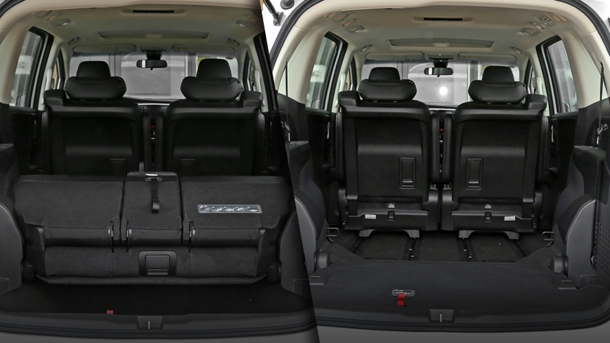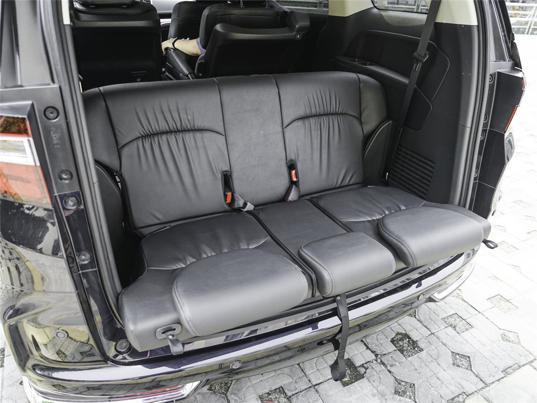 来到尾箱我们可以发现有一处向下掏空的空间。它的好处就在于,当第三排长期处于闲置状态的时,可通过折叠翻转放倒收纳,使得掏空的部分得到完美贴合,不浪费一丝的空间,并且还能获得一个纯平的地台,这是相当巧妙的一个设计。以至于后来有不少MPV都借鉴它的设计,可见本田对于空间的理解是多么的透彻。