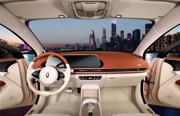 坐进车内,你会发现极具个性的设计元素同样应用在车厢布局内,这套官方主打的棕色加米色双拼配色,就好像Coser的洛丽塔风格,拥有别致的视觉观感,此外车厢内还融合最新的科技设计美学,像悬浮式一体双联大屏都是很讨喜女性消费者。