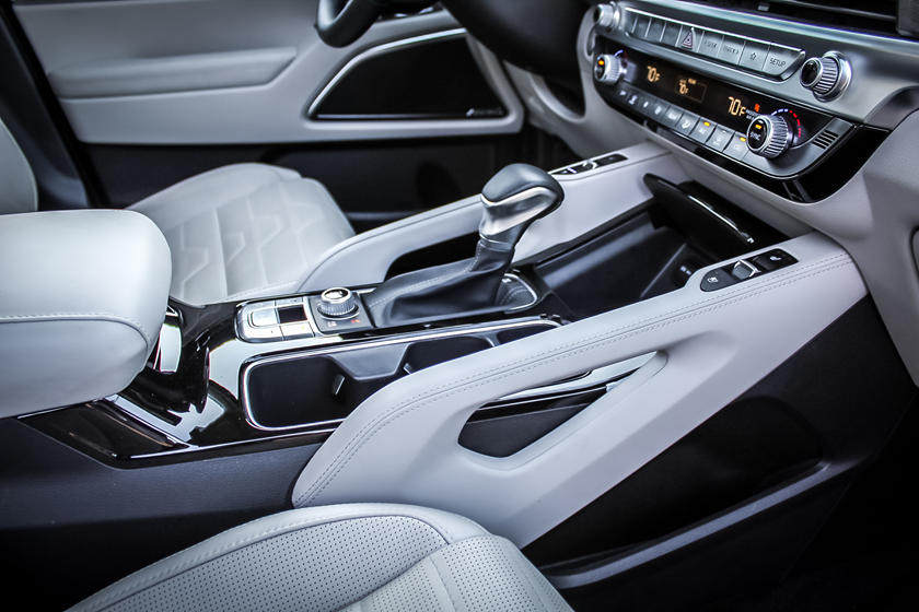 内饰设计看上去就比较传统了,不是如今很多新车强调的科技未来设计,而且在选材用料上花费更多的心思。实木的饰板和大面积的Nappa真皮包裹,的确非常有美式豪华的味道。新车相比现款车型其实内饰变化并不大,方向盘上换装了最新的起亚logo,中控屏幕由原来的8英寸升级到10.25英寸。