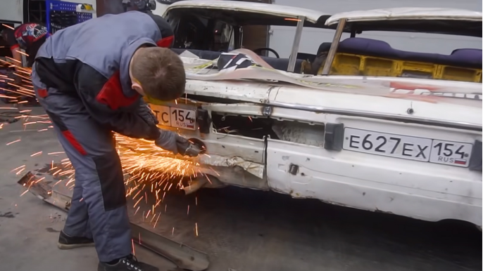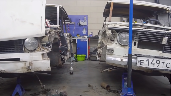 又经过一轮的粗暴焊接,两台拉达总算勉强合在一起了。