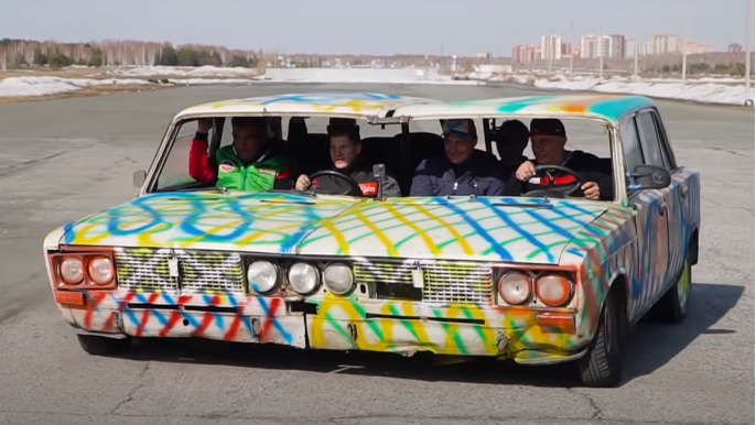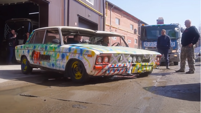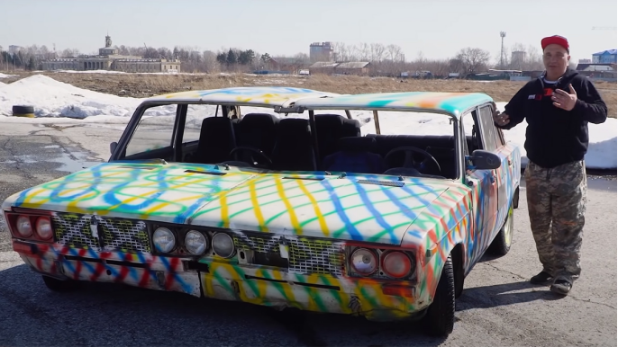 纯色车身显然衬不上如此个性的拉达,所以在红黄蓝绿一轮骚操作之后,这车逐渐有了该有的模样。